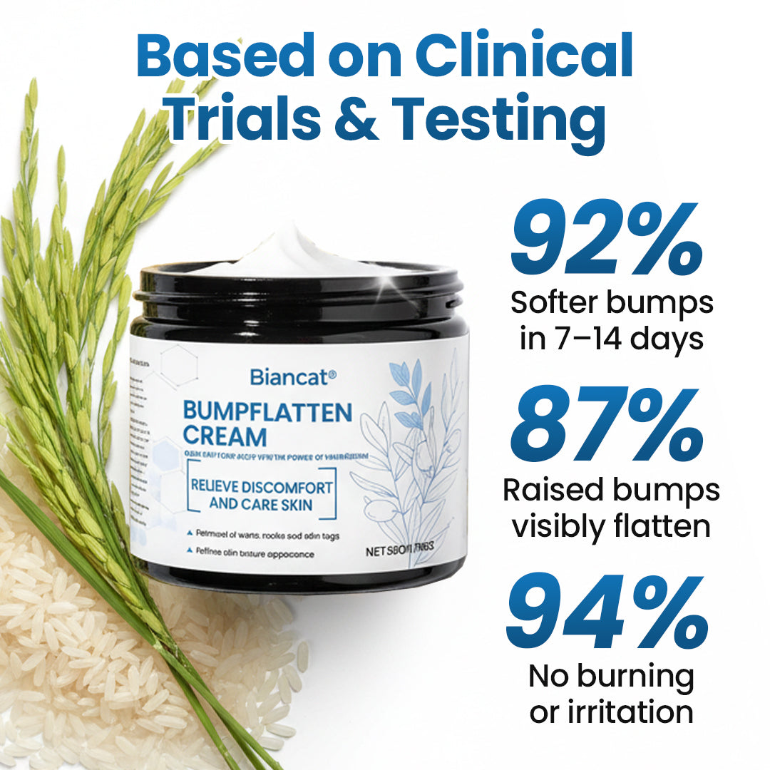 That’s why we created Biancat® BumpFlatten Cream — a gentle, daily-safe formula designed to soften raised tissue, break down deep keratin buildup, and gradually smooth small bumps without acids, burning, or irritation.